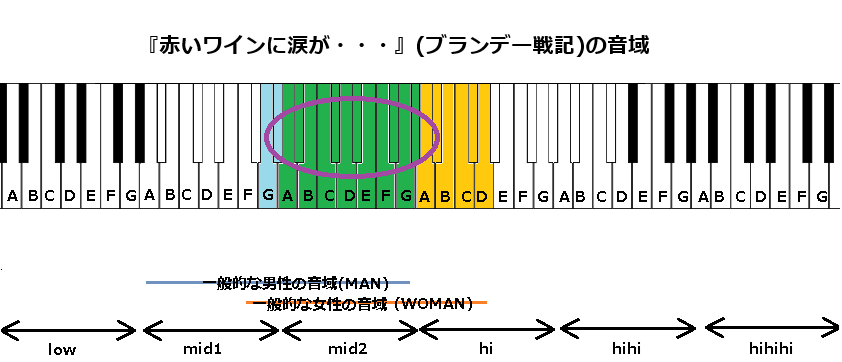 『赤いワインに涙が・・・』(ブランデー戦記)の音域