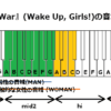 まず、地声最低音mid1FはAメロで登場します。この辺りは男性の音域の範囲内です。一方、女性にとっては低いレンジとなります。女性の場合、原曲キーで歌唱することができる人も一定数おられるかもしれませんが、一般的にはキーを上げた方が歌いやすいです。